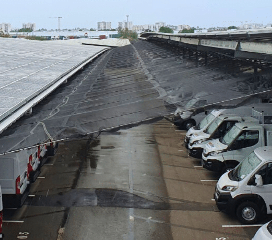 Nos experts ont développé des solutions de protection contre la grêle pour protéger les véhicules sous les panneaux photovoltaïques.
